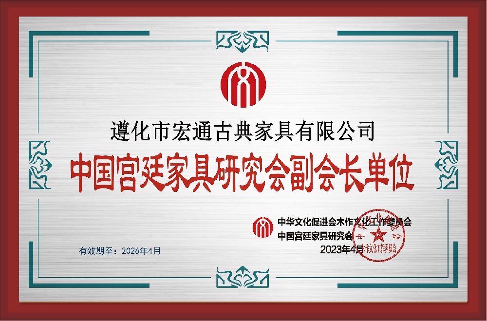 遵化紅木文化產業協會會長單位、中國傳統文化促進會紅木專業委員會副主任單位